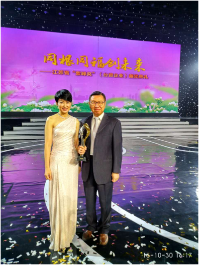 经国务院批准,江苏省政府专门设立目前大陆各省市中首个面向台资企业的表彰奖项"紫峰奖"。该奖根据江苏台资企业特点,聘请了专门机构制定科学有效的评价体系,设立了五大类别奖项,对扎根江苏、表现突出的台资企业进行了表彰,继续支持台资企业转型升级、做大做强,进一步扩大深化苏台各领域交流合作,努力让合作成果惠及两地人民。可成科技等10家企业荣获"纳税贡献领军企业"奖,仁宝电脑集团等10家企业荣获"出口贸易领军企业"奖,大陆首家台资法人银行永丰银行(中国)有限公司等4家企业荣获"现代服务业领军企业"奖,以海门完美(中国)药业有限公司领衔的30家企业荣获"成长型企业"奖,昆山超绿光电有限公司等10家企业荣获"青年创业企业"奖。